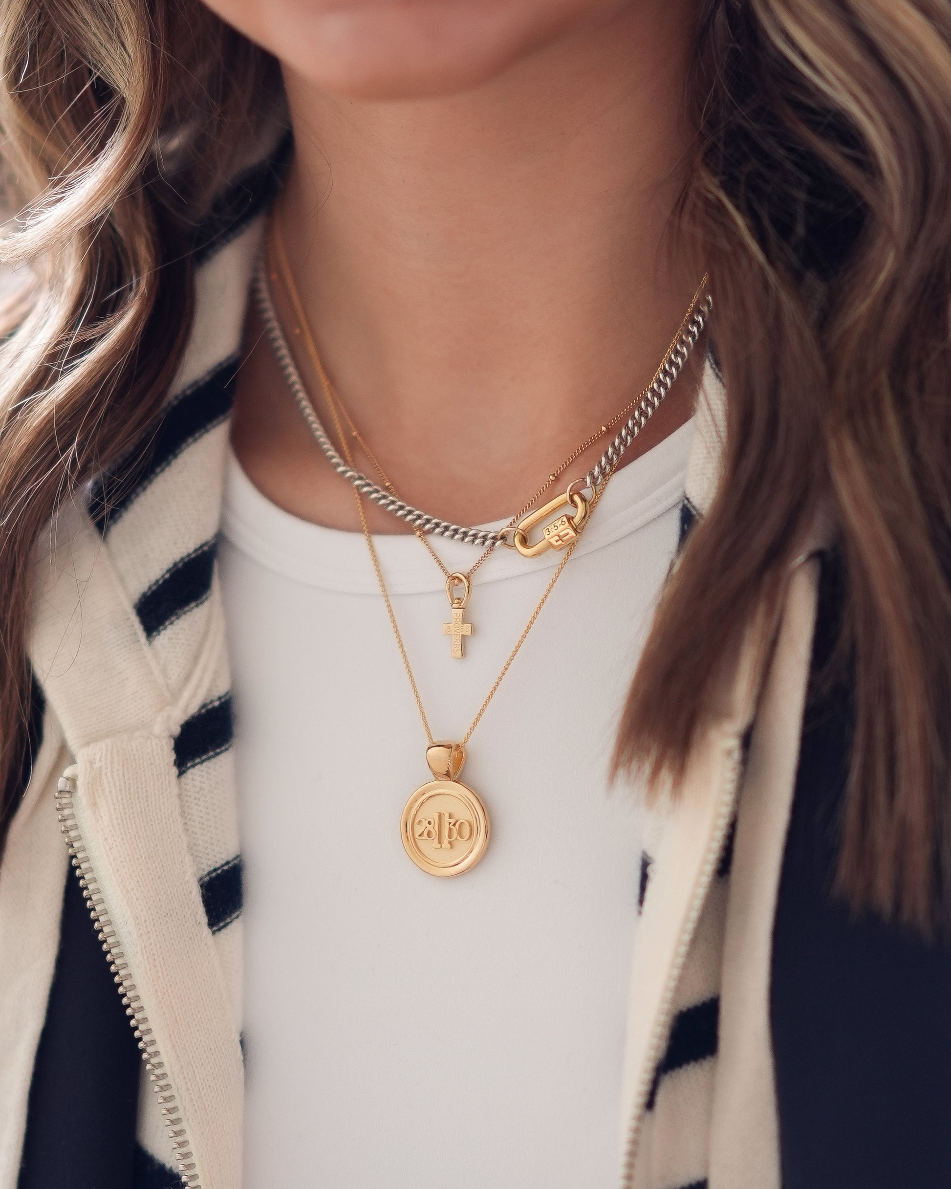 The FAYE 29 and 11® Swivel cross has a .5" cross hanging from a swivel bale allowing both sides of the cross to display. On one side the name of the chapter is inscribed vertically with the chapter number and verse listed horizontally on each side of the name. The other side of the cross is a high polished gold finish.
