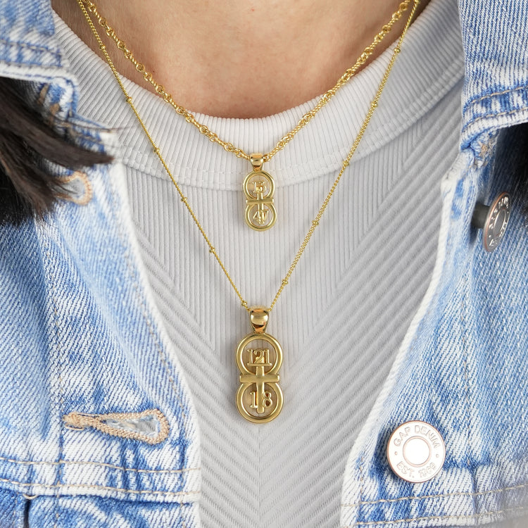 The RIYAN 29 and 11® pendant has the numbers 121, 1, and 8 intertwined with the cross to represent Psalm 121:1-8 with the chapter word "Psalm" inscribed on the back.